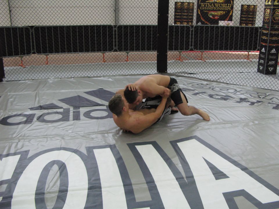 Finalmente il terzo giorno, tocca a noi si combatte, ci cimentiamo con atleti preparati, dando il meglio di noi, il primo a combattere è Francesco che domina il ring vincendo il primo posto, poi tocca a noi, io e mio fratello abbiamo capito il ruolo fondamentale dell’ angolo cimentandoci nell’ impresa, Giorgio è il primo, dopo un lungo riscaldamento inizia a combattere sopraffacendo il suo avversario anche grazie alla forza acquisita durante gli ultimi mesi di allenamento funzionale, poi è il mio turno, la tensione è alta, l’arbitro dà il via, si inizia, una serie di scambi in clinch e approfittando di una distrazione dell’ avversario riesco a chiudergli una anacorda, sento in sottofondo la voce di mio fratello e del maestro Carone che mi gridando “stringi, ruota, sta per battere” e così concludo il mio primo incontro; dopo 30 minuti si riparte, Giorgio deve sfidare un avversario molto forte, pratico di bjj, un atleta della bathatinha gracie academy, il loro è un combattimento senza esclusione di colpi, armbar, ghigliottine, anaconde e triangoli, dopo i primi 5 minuti sono 0 a 0, io senza voce, confido in una vittoria di Giorgio per decisione arbitrale, ma l’arbitro decide di dare 2 min. di extra round nei quali nessuno dei due fa nemmeno un punto, altri 2 min., la tensione sale, Giorgio conquista i punti che lo fanno vincere proiettando l’avversario ed effettuando un passaggio di guardia, 5 a 0, l’ arbitro dichiara Giorgio vincitore; dopo ben 9 min. di lotta Giorgio torna sorridente e soddisfatto da noi, pronto per farmi nuovamente da angolo. Il mio secondo combattimento è del tutto analogo al primo, questa volta il mio avversario sembra veramente forte, impossibile giocare di forza, fingendo di voler entrare in double leg riesco a fargli abbassare la testa e chiuderli una anaconda, passando così le semi-finali. Siamo in finale, tocca prima a Giorgio,viene chiuso subito in leva, resiste, ma l’avversario è veramente bravo.